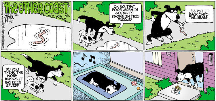 The Other Coast strip was picked up by Creators Syndicate in 2001 and now appears in over 200 newspapers worldwide. The second Other Coast collection, This Is Your First Rock Garden, Isn't It? was published in 2005.