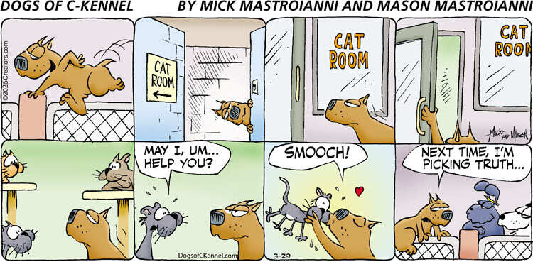 Dogs of C-Kennel, created by Mick Mastroianni, was featured as a comic strip in development in February 2007. Syndicated in 2010, the Dogs are now produced by Mick and his brother, Mason Mastroianni, B.C. cartoonist and Wizard of Id Illustrator.