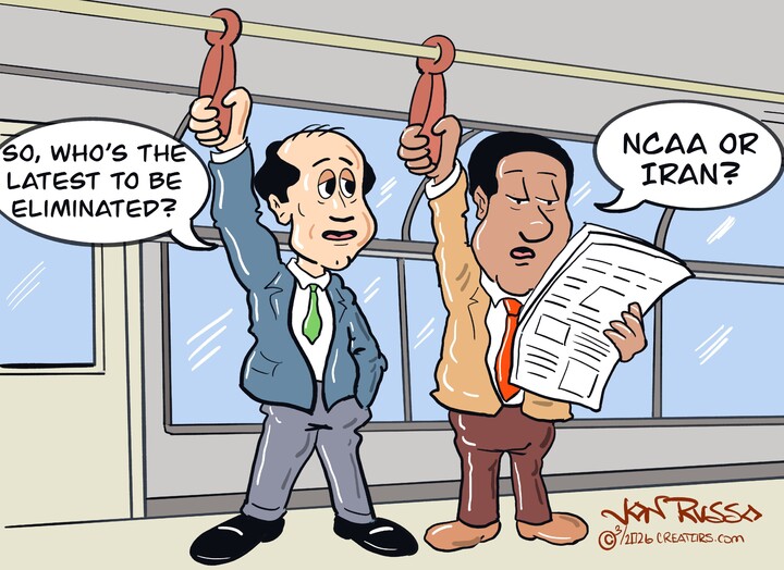 Cartoon ideas usually strike Jon Allen Russo in the middle of the night, rousing him from sleep. As he puts it, “The Muses come to inspire.” However, if Jon doesn’t rise and shine, then the Harpies terrorize him to get to work at the art board!